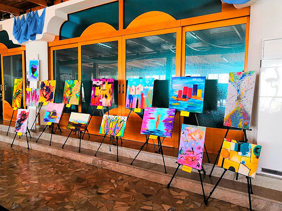 Una mostra dal titolo intrigante “Bazar 19” che bene si associa ai dipinti di Fidelia. Il mercato mediorientale e nordafricano che rimanda alla miriade di sfumature di colori, forme e profumi, si ritrovano ampiamente nelle opere di questa pittrice. Fidelia ha avuto una sua particolare formazione che l’ha vista prima frequentare dopo le scuola superiore, prima il LUC di Manfredonia, quei Laboratori Urbano Culturale, esperienze di una felice stagione per la Cultura in Puglia, ed ora il Laboratorio artistico AGATA curato da Raffaella Fariello, sempre nella vicina Manfredonia. Quindi un percorso formativo che oggi le permette di esporre interessanti tele. Fidelia ha associato alla sua forte personalità il desiderio di conoscere e di esprimersi con il colore, regalandoci tele che ci emozionano. La pittrice espone opere su cui i nostri occhi resteranno incantati come lo sono stati da ragazzi, quando spiavamo nei piccoli fori di quegli strani tubi di cartone che erano i caleidoscopi.
