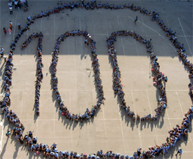 La mattinata è proseguita con variegate attività: gioco, caccia alle parole chiave (coraggio, solidarietà, libertà, vita, gioia, creatività, armonia, giustizia, pace, accoglienza, responsabilità, sensibilità), animazione espressiva, servizio concreto sul territorio con la pulizia di un pezzetto del Bosco dell’Incoronata. Dopo il pranzo, i diversi gruppi di formazione hanno condiviso i lavori della mattinata, rappresentati con tecniche diverse (canto, recitazione, mimo, danza, ecc). Alle 17,00 finalmente arriva il momento tanto atteso dai ragazzi: alcuni Capi salgono sulla cima del campanile dell’Incoronata per fotografare il numero 100 tracciato nel piazzale sottostante dalle sagome delle associate di sesso femminile, mentre i rappresentanti di sesso maschile lo circondano con un’enorme corona rotonda. Alla fine della cerimonia un ulivo è stato piantato in uno spazio individuato all’interno dell’uliveto del Santuario dell’Incoronata come simbolo del nostro territorio, mentre un’altra piantina di ulivo è stata consegnata a ogni Comunità Capi per essere piantato all’interno della propria realtà parrocchiale o comunale.