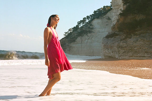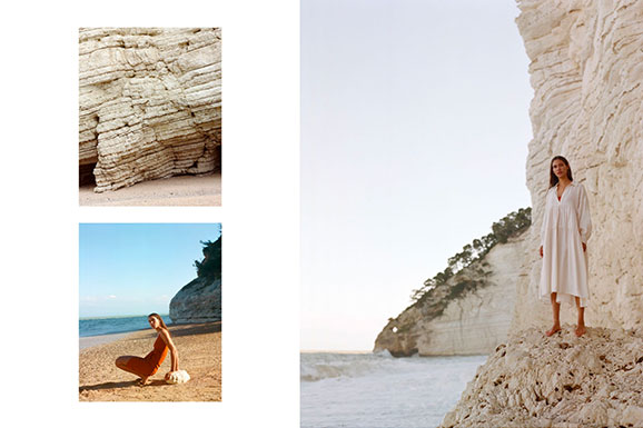Negli scatti, cui fanno da sfondo la bianche falesie ed il cristallino mare del Gargano, è possibile ammirare sinuose modelle che indossano abiti leggeri, colori vivaci e accessori perfetti per un guardaroba estivo.