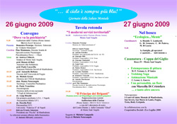 Il programma prevede Venerdì 26 giugno 2009, alle ore 9.30, presso l’auditorium delle Clarisse di Monte Sant’Angelo (Rione Junno), il convegno Dove va la psichiatria, coordinato da Giuseppe Mammana, docente della Scuola di Specializzazione di Psicoterapia di Chieti. Alle ore 16.30, si svolgerà la tavola rotonda I moderni servizi territoriali. Ad entrambi i convegni parteciperanno docenti di psicologia, psicoterapeuti e medici specializzati in psichiatria. La serata concluderà alle ore 19.30 con uno spettacolo teatrale Il Principe dei Briganti, dramma storico sul Brigantaggio post-unitario garganico.