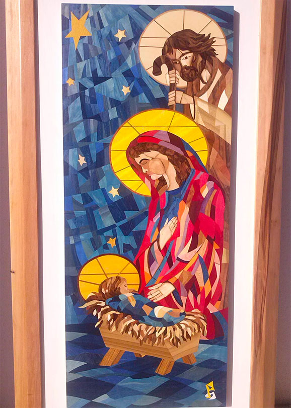 Michele Prencipe, classe 1958 è arrivato a questa forma di arte applicata in età matura, acquisendo una padronanza degli strumenti e della tecnica degna dei migliori maestri intarsiatori. Non è alla sua prima mostra, infatti ha esposta nel 2013 a Manfredonia nella prestigiosa sede del Palazzo dei Celestini e a Mattinata nell’androne di Palazzo Barretta sede del Municipio di Mattinata. L’Arte della tarsia aveva in Napoli le migliori botteghe e scuole. A Mattinata una tale tecnica era usata anche dai maestri ebanisti che adoperavano essenze legnose dagli spessori maggiori di quelli che oggi grazie alla tecnologia del taglio si possono ottenere. Sottigliezza che permette una maggiore versatilità nel taglio e nella composizione dei disegni, che poi diventano dei veri e propri quadri.