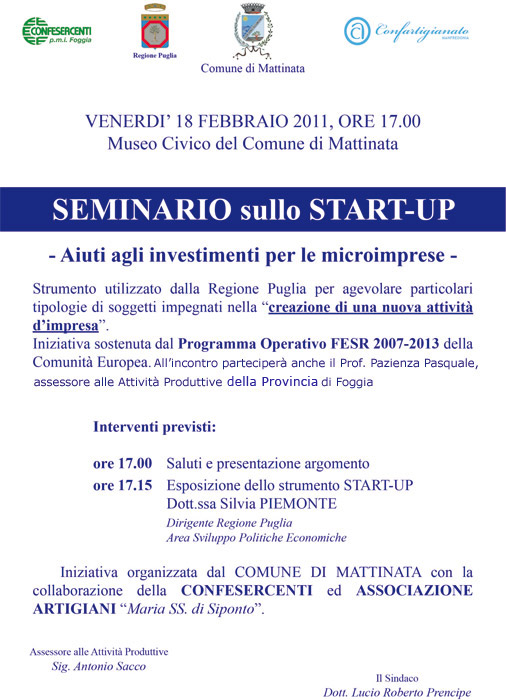 Seminario sullo START-UP. Aiuti agli investimenti per le microimprese